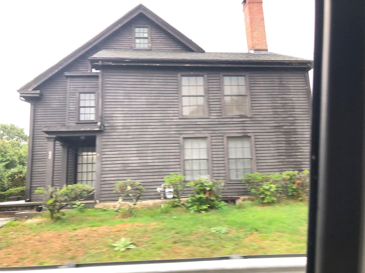 Since it was raining heavily, we pretty much stayed cocooned in the van all morning. “We” then hatched a plan to do a bit of shopping. I awoke from my nap at the first stop and we decided to drive by the John Proctor house. John Proctor was one of the unfortunate people hanged as a witch. John Proctor is a second cousin many times removed of Mrs Milddogs. Ann Pudeator (also hung as a witch) was one of Mrs Milddogs grandparents many generations ago. The John Proctor house is a private residence so you can’t tour it. We took some pictures as we drove by.